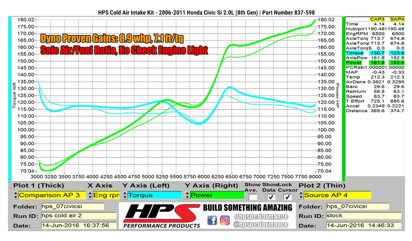 - Delivers dyno proven performance gains - increase horsepower +8.9 whp , torque +7.1 ft/lbs and improve throttle response. Fine-tuned by HPS Performance to deliver the maximum performance output through the top end power band.