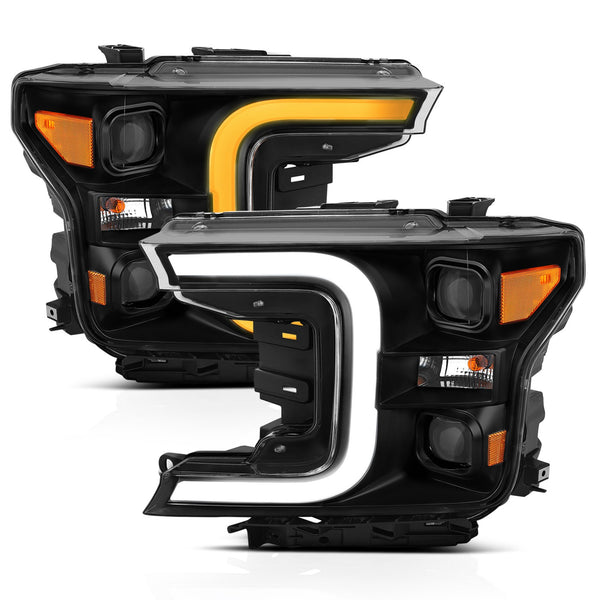 2009-2014 FORD F-150 PROJECTOR PLANK STYLE HEADLIGHTS BLACK (FOR HALOGEN MODELS ONLY)