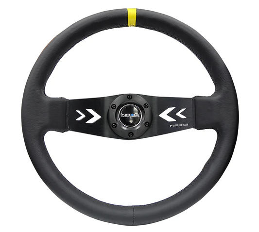 NRG Deep Dish Series Steering Wheel (3" Deep) Black Leather, Red Stitching (350mm)