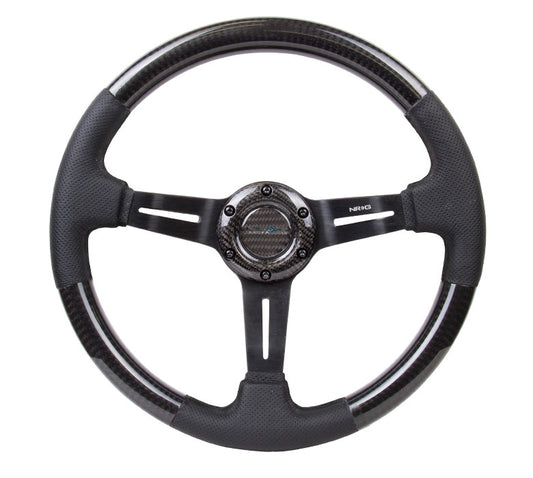 NRG Carbon Fiber Series Steering Wheel Carbon Fiber/Air Leather with Black Stitching (350mm) 1.5" Deep