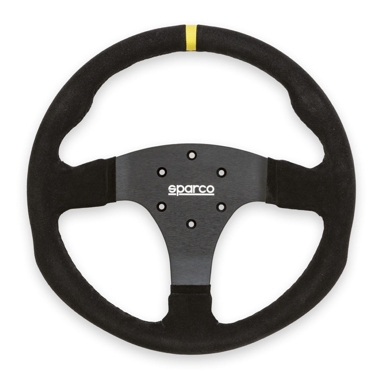 The Sparco R330 steering wheel has a unique anatomic grip with a yellow leather centering stripe designed to improve comfort and driving precision. The R330 has a varied grip diameter that provides a better feel. The R330 is available in suede or leather with black cross stitching for added durability.