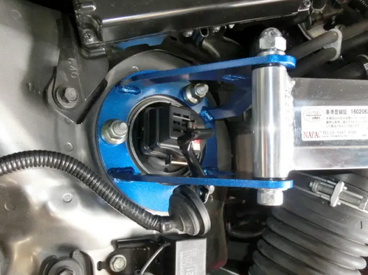 Cusco is a high performance Japanese suspension tuner that offers a Strut Tower Bar for a wide variety of Japanese vehicles. Just as other strut tower bars, it will reinforce the structural integrity of the vehicle’s chassis. This reinforcement will prevent chassis flexing under severe stress from hard cornering. By reducing chassis flexing, we are able to divert the cornering force to the springs and shocks, not the chassis. Now the springs and shocks can do their jobs more effectively and efficiently. Cusco bars utilizes a tubular center bar with powder coated blue bases which are adjustable. Installation is quite easy with the adjustable ends.