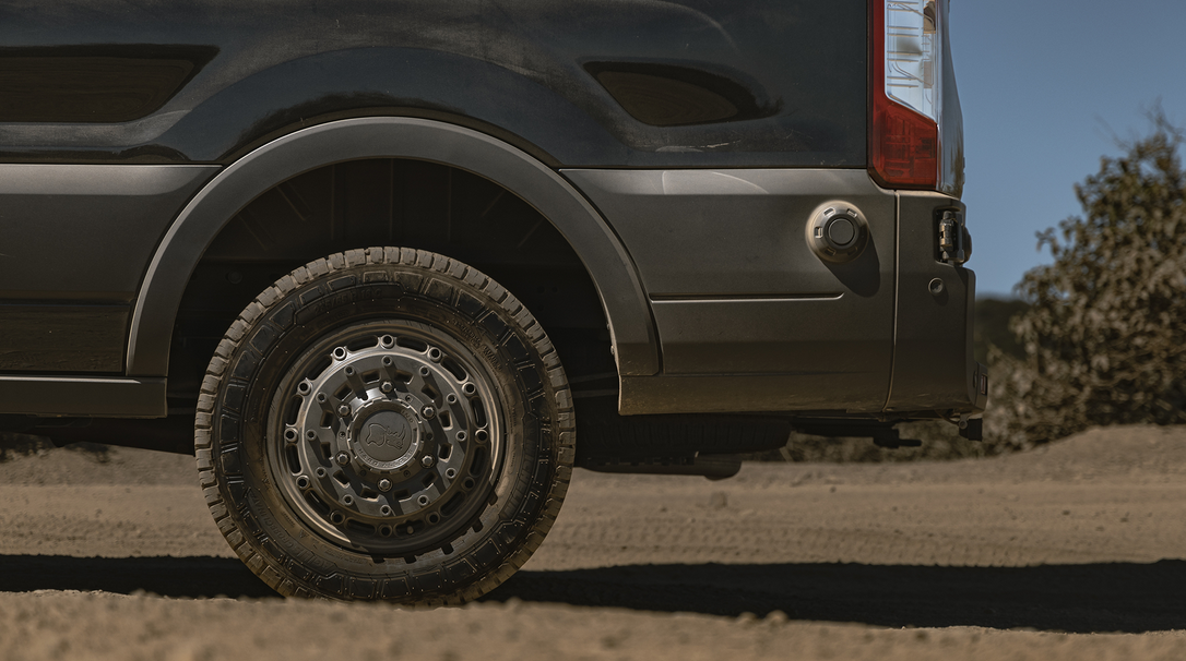 The Black Rhino Arsenal AT wheel is designed and engineered specifically as a bolt-on wheel application for the 2020+ AWD Ford Transit van. Following the success of the Black Rhino Sequoia for lifted Transit AWD vans, our production team received quite a few requests for a bolt-on AWD Transit wheel that did not require any suspension or fender modifications. The Arsenal AT is offered exclusively in 16x6 as a direct replacement for the factory Ford Transit AWD wheel. The Arsenal AT utilizes the popular Arsenal truck wheel style in a new wheel profile designed to complement the AWD Transit van. The Black Rhino Arsenal AT wheel is offered in Sand on Black and Matte Black finishes. Transform your Transit into an adventure-ready powerhouse with the Arsenal AT.