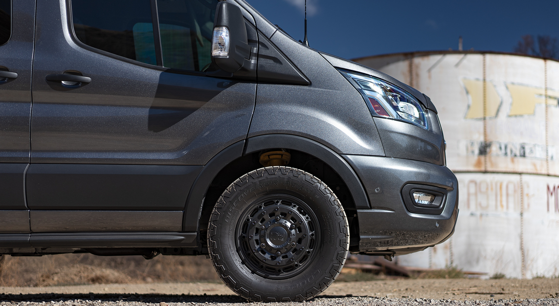 The Black Rhino Arsenal AT wheel is designed and engineered specifically as a bolt-on wheel application for the 2020+ AWD Ford Transit van. Following the success of the Black Rhino Sequoia for lifted Transit AWD vans, our production team received quite a few requests for a bolt-on AWD Transit wheel that did not require any suspension or fender modifications. The Arsenal AT is offered exclusively in 16x6 as a direct replacement for the factory Ford Transit AWD wheel. The Arsenal AT utilizes the popular Arsenal truck wheel style in a new wheel profile designed to complement the AWD Transit van. The Black Rhino Arsenal AT wheel is offered in Sand on Black and Matte Black finishes. Transform your Transit into an adventure-ready powerhouse with the Arsenal AT.