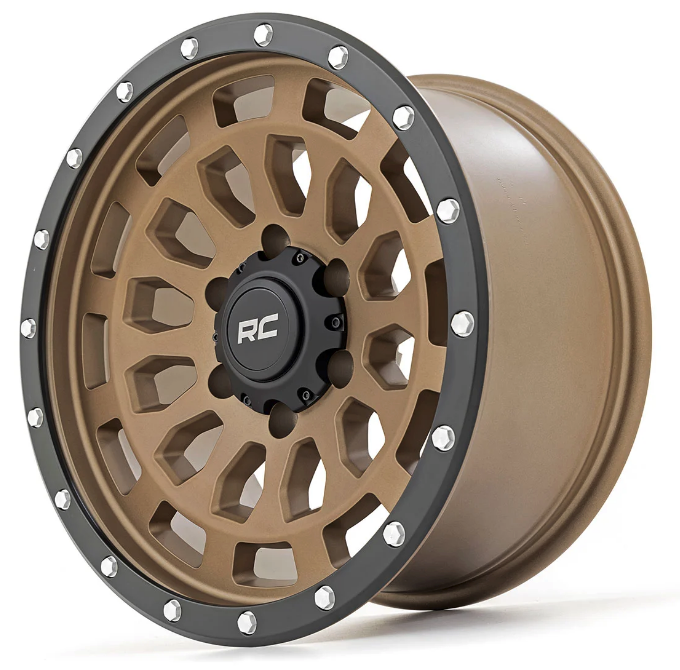 Superior Design. Our Series 87 bronze Wheels feature a high-quality bronze finish with matte black simulated bead lock and one-piece aluminum construction that delivers a strong, durable wheel. These copper color wheels boast an aggressive design and include a Rough Country black center cap, so you can tackle the road in style. Rough Country's Copper Wheels come with a 1-year finish and Limited Lifetime Structural Warranty.