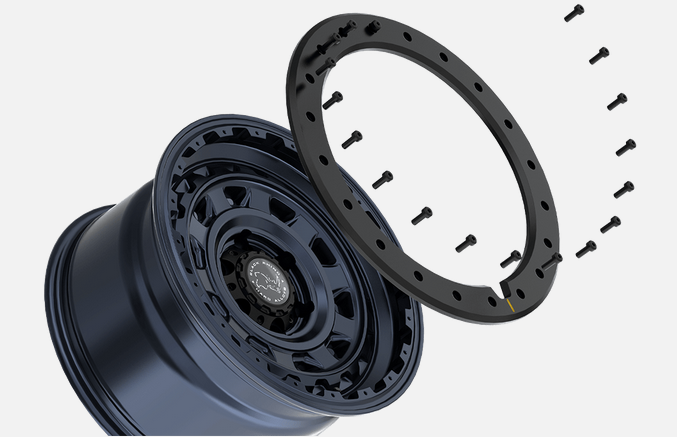 The Black Rhino Xplorer utilizes a high density rock guard ring attached to the wheel's outer lip, which helps prevent damage to the lip and face of the wheel. The rock guard ring is attached using 20 anodized black bolts that are recessed to help avoid damage and wear that comes from off-road use.