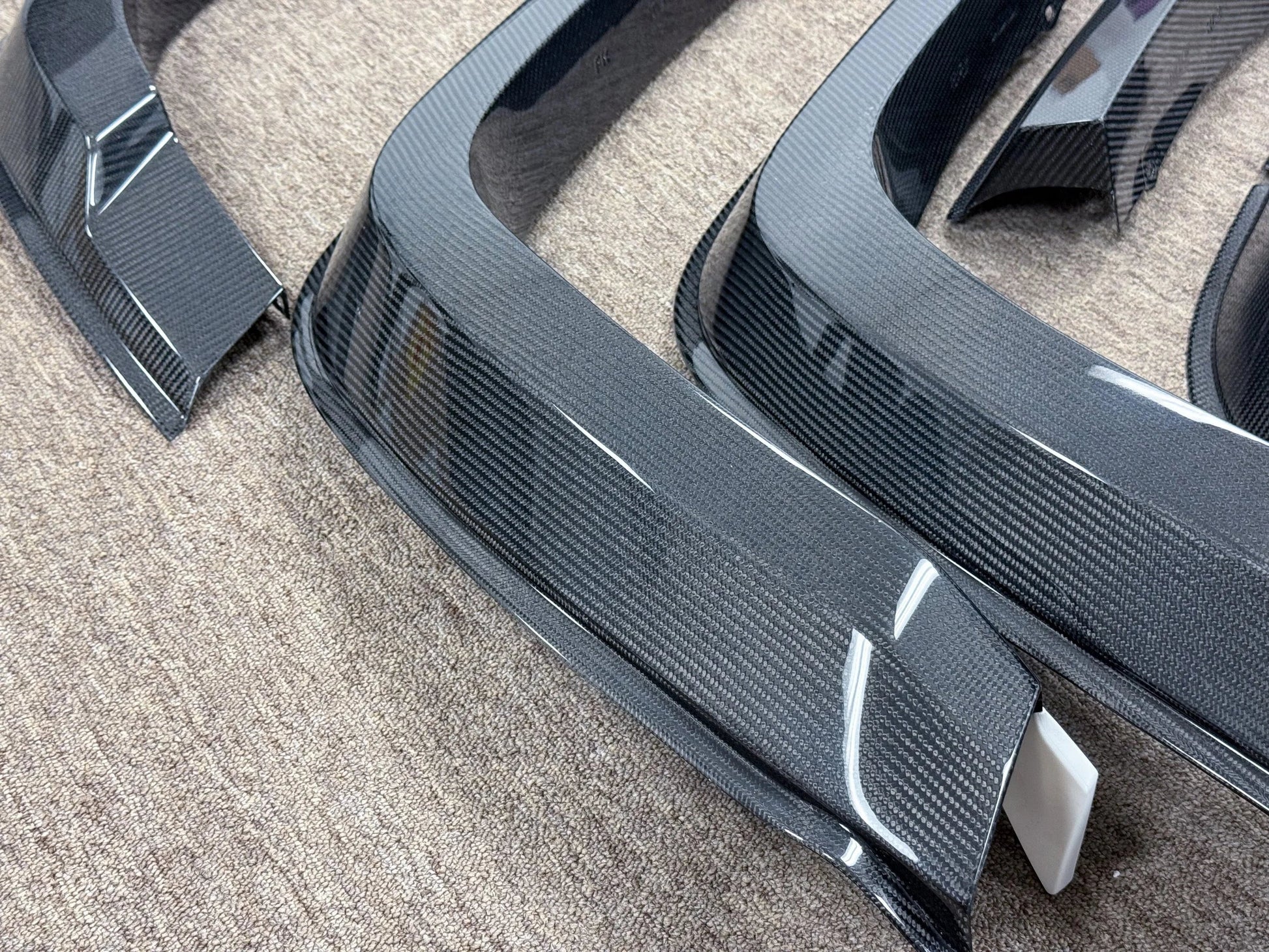 The kit is available in high-quality automotive grade fiber-reinforced plastic in black primer (matte) which can be painted over or can be used as is. It is also available in high-quality carbon fiber with either a gloss or a matte top coat finish.