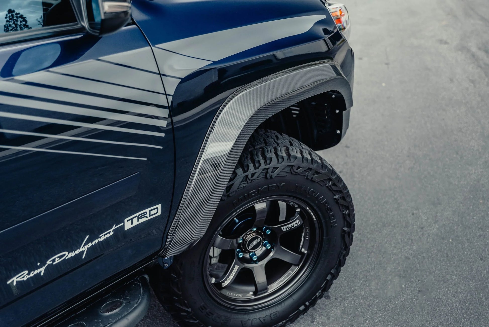 The Fender Flare Kit features an OEM+ style design, with the front flares featuring a high clearance design that works perfectly with a viper cut.