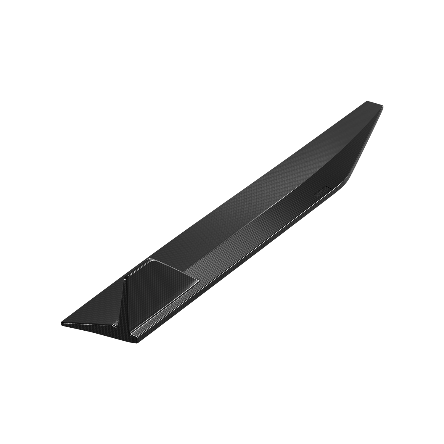 The Side Skirt Extension is made with high-quality dry (pre-preg)carbon fiber finished in gloss or matte clear coat that is UV and scratch resistant. We are also offering Polyurethane versions in matte black finish.