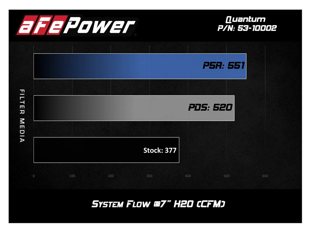 Quantum uses an integrated filter-to-housing design that attaches both components with four captive screws, making for a positive surface area seal, as well as easy installation and maintenance. Its durable sealed housing features a unique, five rib, industrial-grade look for aFe quality recognition.