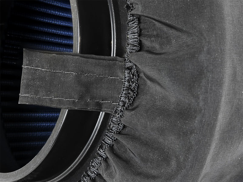 aFe Magnum SHIELD Pre-Filters protect your performance air filter and extends your filter cleaning intervals by removing large particles like twigs and bugs from the air stream prior to the air filter. This pre-filter is made of a dry weave fabric that does not attract dirt and cleans with soap and water. The aFe POWER logo is silk screened on the pre-filter to let everyone know an aFe Quantum intake is powering your rig.