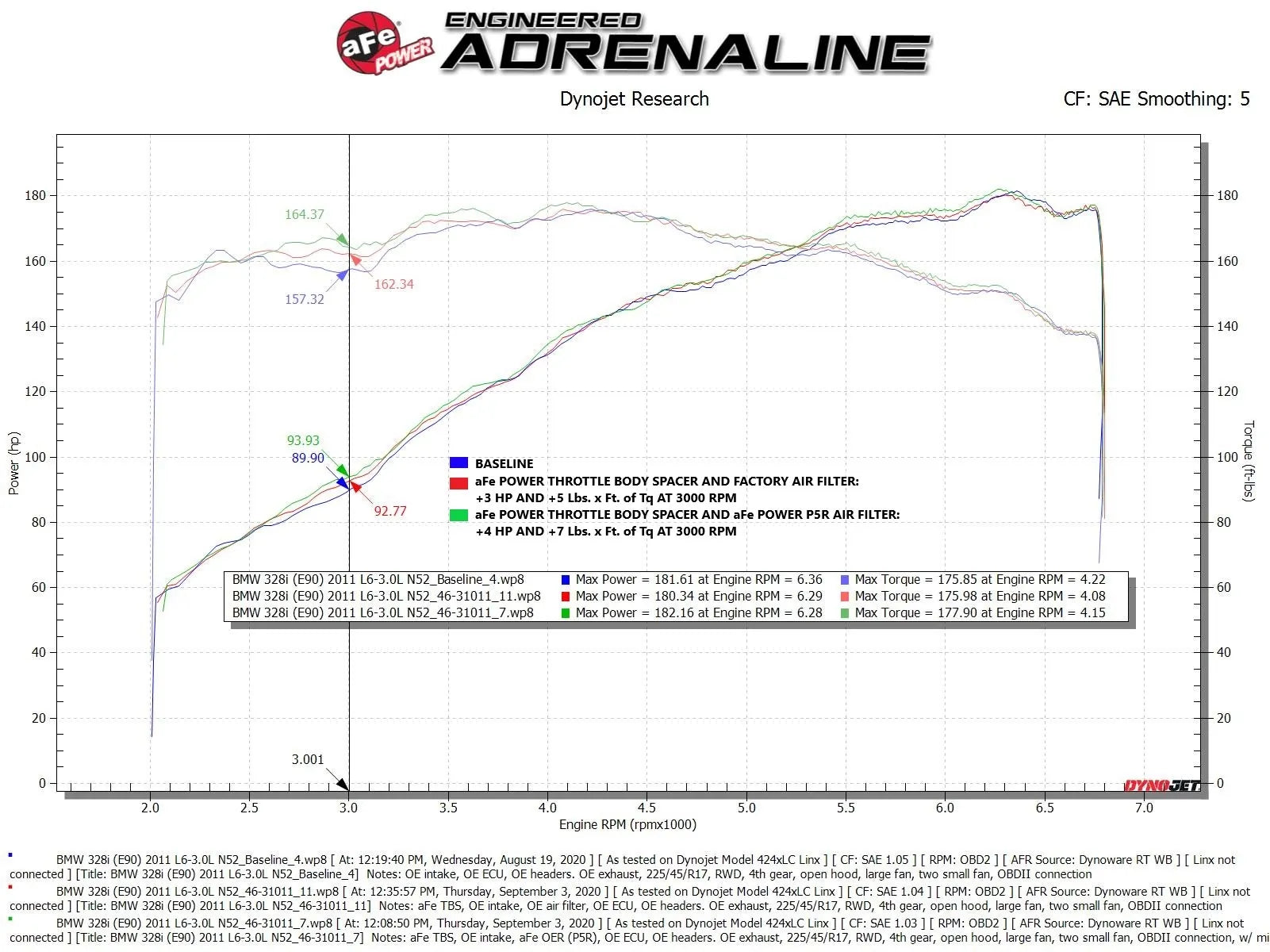- Dyno-Proven Gains up to +4 HP & +7 Lbs. x Ft. TQ w/ Throttle Body Spacer and aFe POWER P5R Air Filter (30-10131)