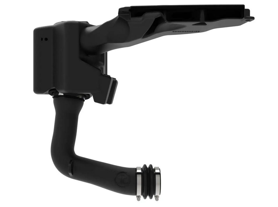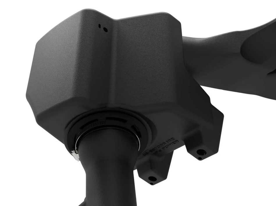 The smooth one-piece sealed housing, constructed of heat-resistant cross-linked polyethylene (XLPE) polymer, features our patent-pending filter-to-housing interface. Its innovative design minimizes the total number of parts, making for an easy installation. A large, clear sight window allows for hassle-free filter inspection, without having to disassemble your system. The system captures cool air with an included Dynamic Air Scoop at the front of the vehicle and an additional air inlet in the vehicle's fender well.