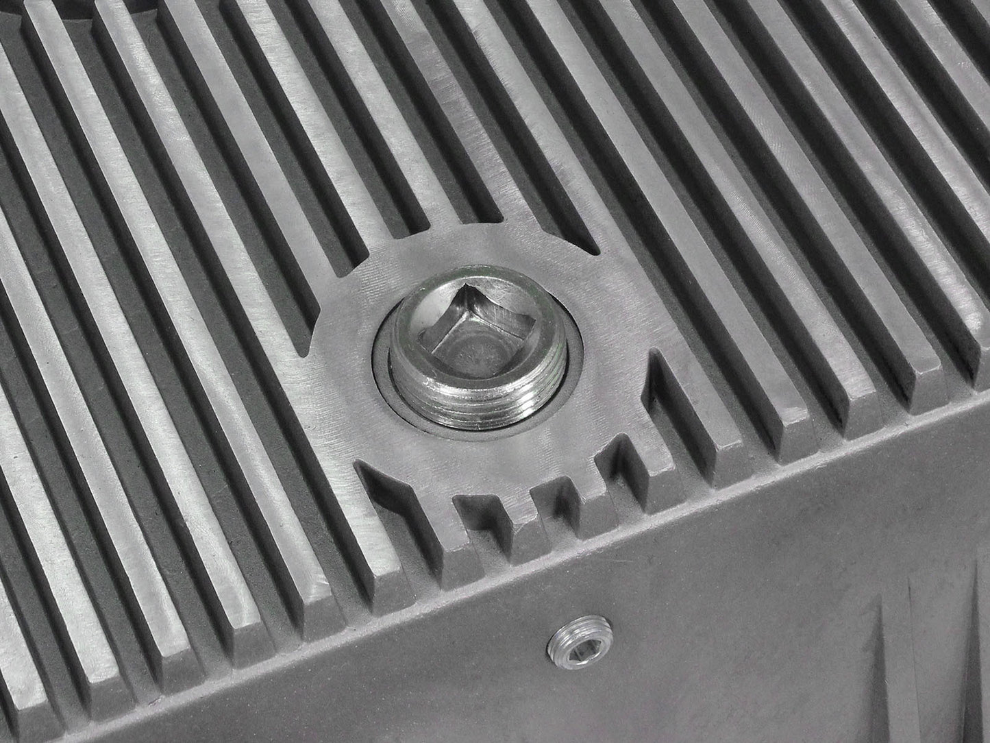 aFe Power's new deep transmission pan brings performance engineering to the protection of your 727-DD transmission. aFe's transmission pan adds an additional 3 to 4 quarts over stock. Internal and external fins transfer heat from the fluid to the ambient air for maximum cooling. This transmission pan is constructed out of durable die-cast A380 aluminum with reinforced ribs for maximum strength.
