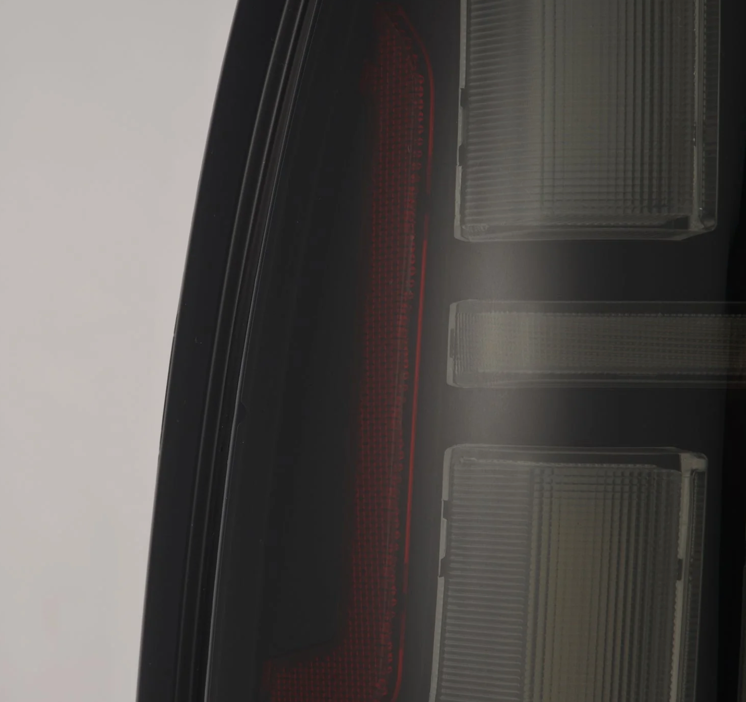 The trapezoidal prisms illuminate with red LEDs for parking lights, intensifying when braking. For turn signals, amber LEDs activate at the center bar between the prisms in a dynamic sequential flow, adding a modern touch. The bottom two LED prismatic tubes light up with white LEDs as a reverse indicator.