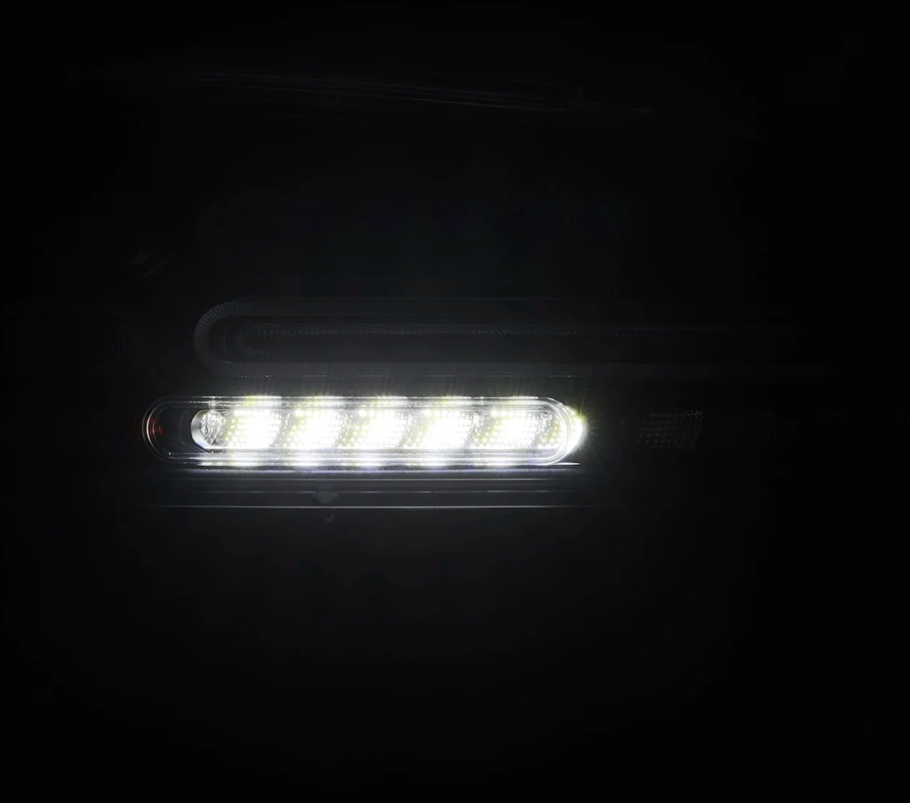 The Quad-Loop NOVA Prismatic light tube serves as a parking light and incorporates our signature activation light feature, which initiates a dynamic startup sequence when the parking lights are engaged. Inside the quad-loop design, a diffuser lens with red LEDs functions as the brake light, providing a strong and highly visible braking indication. The inner bottom segments of the tail lights illuminate in white LED, serving as reverse lights to enhance visibility when backing up. The entire bottom segment integrates sequential amber LED turn signals, offering a sleek, dynamic, and highly noticeable signaling effect.