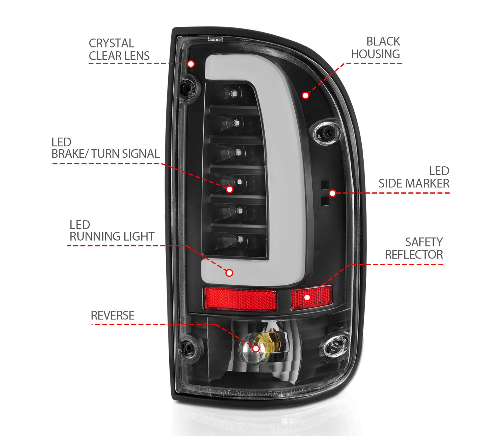 ANZO 1995-2000 Toyota Tacoma LED Taillights Black Housing Clear Lens (Pair)