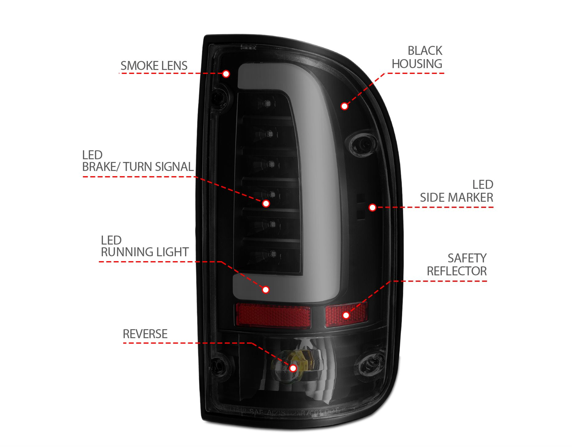 ANZO 1995-2000 Toyota Tacoma LED Taillights Black Housing Smoke Lens (Pair)