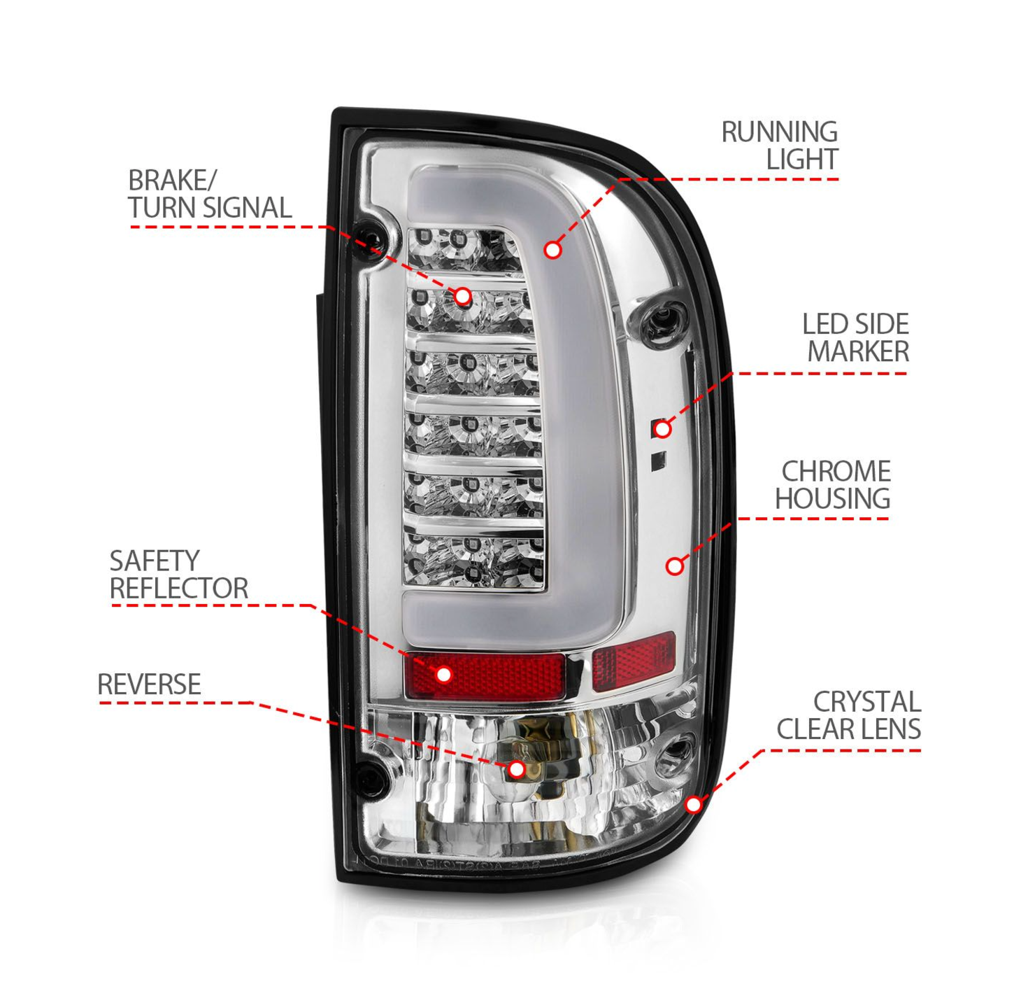 ANZO 1995-2000 Toyota Tacoma LED Taillights Chrome Housing Clear Lens (Pair)