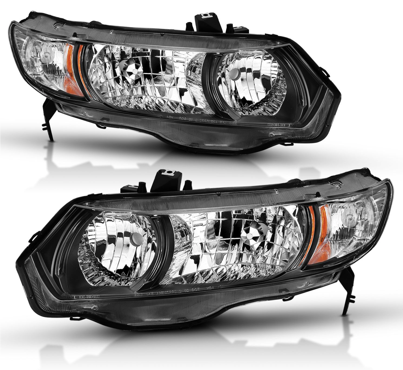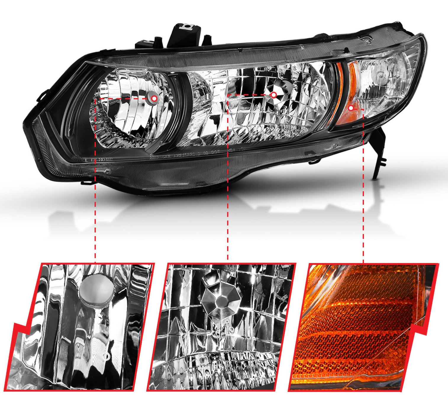 Anzo 2006-2009 Honda Civic Crystal Headlights 2DR Black (OE Type Replacement)