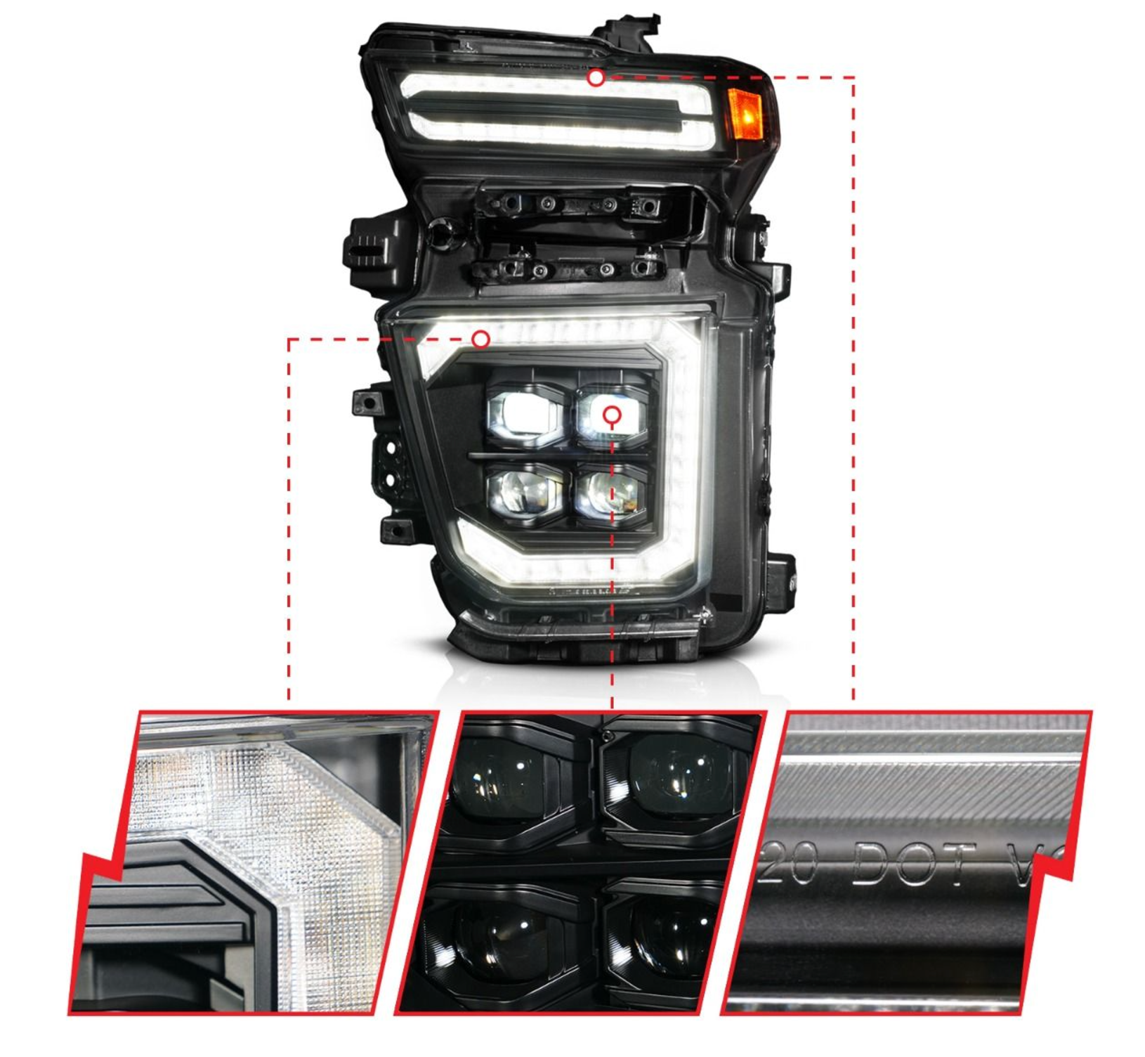 Anzo 2020-2023 Chevy Silverado 2500HD/3500HD Z-Series Full LED Projector Headlights Black W/ DRL Switch Initiation & Sequential