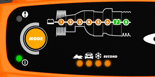 Unique 8 step charging - The patented 8 step program tests battery condition and revives, charges and maintains to ensure maximum battery life and performance. RECOND recovers deep discharged and stratified batteries. FLOAT/PULSE maintenance ensures ideal battery care during periods of inactivity. - Charges down to -22°F (-30°C) - Specially developed for use in extreme cold conditions and featuring AC and DC cables adapted for low temperature use.