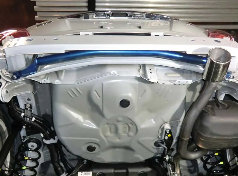 The power brace strengthens chassis and minimizes body flex especially at cornering loads, enabling optimal suspension movement at the intended geometrically aligned state. Having the same effect as stitch welding a chassis, the Power Brace series are Bolt-on design with some minor body piece (under cover/interior etc) trimming and completely effective on all vehicle chassis no matter stock or highly modified.