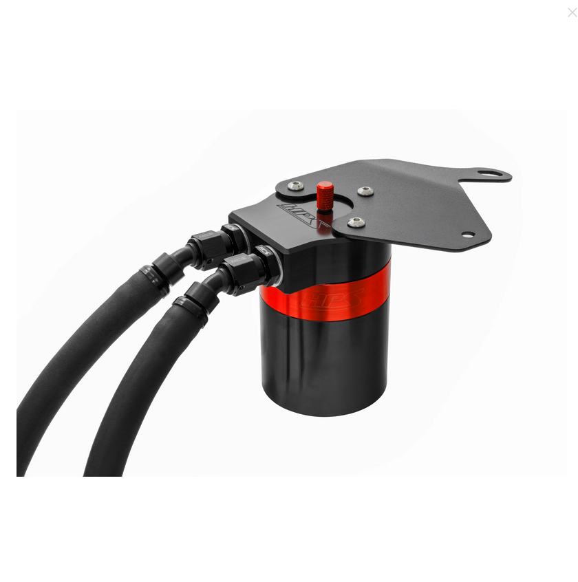 Maximize your Acura TLX 2.0L Turbo engine's potential with the HPS Performance Oil Catch Can Kit (part number 860-011). This essential upgrade prevents harmful oil and vapor blow-by from entering your intake system, reducing carbon buildup and preserving optimal octane levels for consistent power. Built to last, the kit features a robust, baffled billet aluminum catch can and durable powder-coated steel brackets. Designed for easy maintenance, the catch can feature a convenient dipstick for fluid checks and a large 5-ounce capacity. The hex at the base of the cup allows for effortless drainage using a 14mm wrench or socket. Installation is quick and straightforward thanks to custom brackets made to mount to factory mounting points at the front of your engine bay. Premium -6 AN hoses and user-friendly push-on fittings ensure a leak-free system. Choose the HPS Performance Oil Catch Can Kit for improved performance, increased efficiency, and extended engine life.