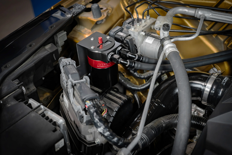 Maintaining the system is simple: the easy-to-read dipstick allows for quick fluid level checks, and the large 5-ounce capacity minimizes the need for frequent emptying. When service is required, the hex at the base of the cup allows for effortless drainage using a 14mm wrench or socket. Installation is a breeze thanks to the custom-designed brackets that utilizes existing factory mounting points for a clean and secure fit behind the ECU. Premium -6 AN hoses and user-friendly push-on fittings further simplify the setup process. If you're seeking peak performance, improved efficiency, and long-lasting engine health, the HPS Performance Oil Catch Can Kit is the ideal upgrade.