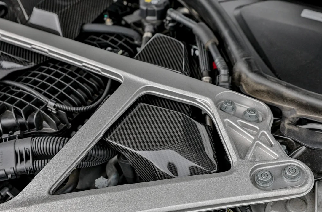 Constructed of carbon fiber pre-preg, this ECU cover replacement adds a bit of flare to your engine bay and matches other BMW M Performance 2x2 carbon components found in the G8X models as well as Indiv's own carbon engine cover. This ECU cover replaces the standard black plastic cover.