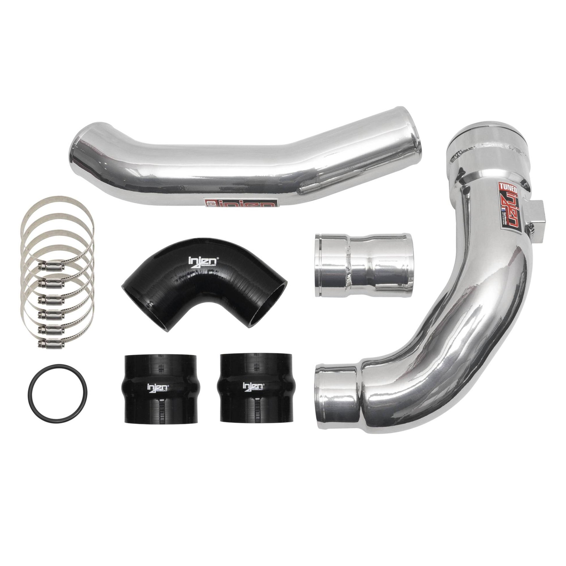 This upgraded charge pipe system is manufactured from oversized mandrel-bent 6061 aluminum and every bend and TIG weld is completed by hand at the Injen Technology headquarters in Pomona, California. The Injen hot-side pipe has an ID of 3.00in and the cold side has an ID of 3.25in. By utilizing oversized piping on both the hot side and the cold side, these charge pipes are able to reduce restriction, balance the airflow in and out of the intercooler to improve performance, and lower engine damaging exhaust gas temperatures (EGTs).
