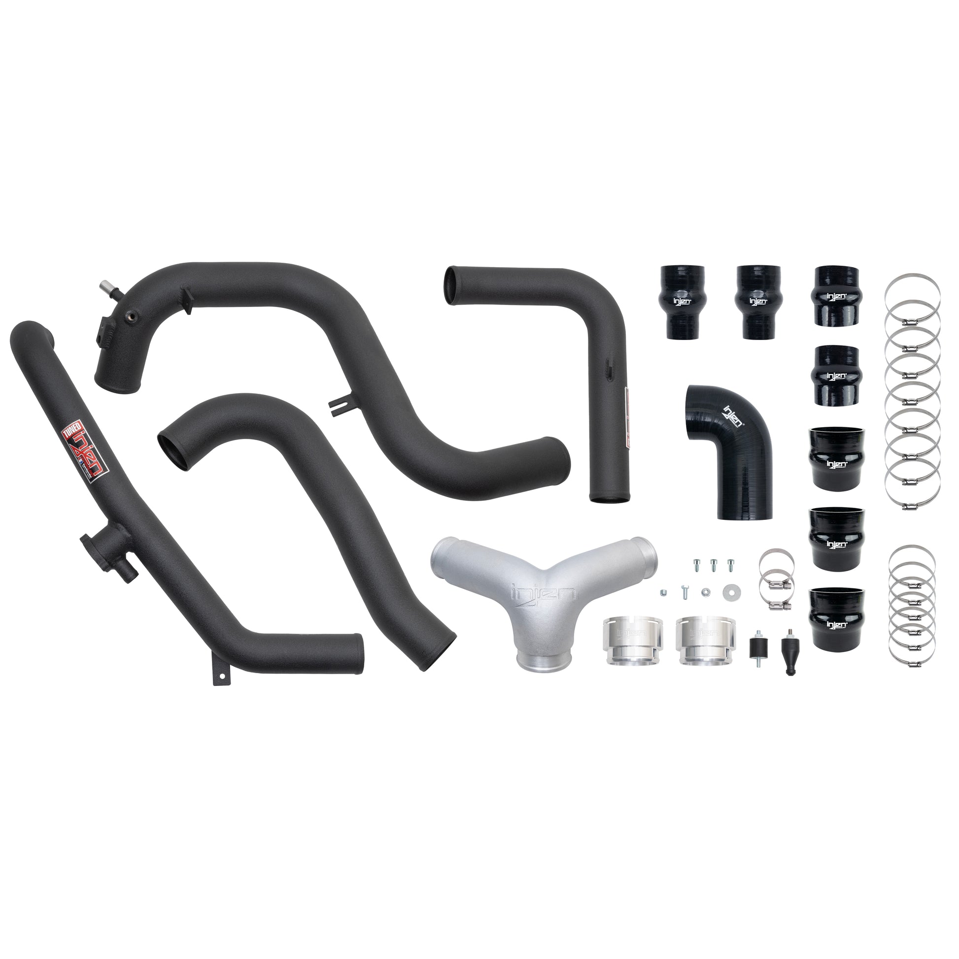 The Injen Technology engineers spent abundant amounts of time designing, testing, and perfecting this performance intercooler charge pipe system to develop some serious bolt-on power. The soul of this charge pipe system is with our mandrel-bent, over-sized 2.75" 6061-T6 aluminum tube that provides a smooth uninterrupted path for highly efficient airflow and a look that will impress every time you open your hood! Being a twin turbo setup, the Y-Pipe was of critical concern and to get the flow balanced just right and for repeatability, our engineers designed a cast Y-piece for harmonized flow and ultimate power. The engineering team also developed precision CNC machined adapter flanges that mimic the OE-Style connections for a simple install.