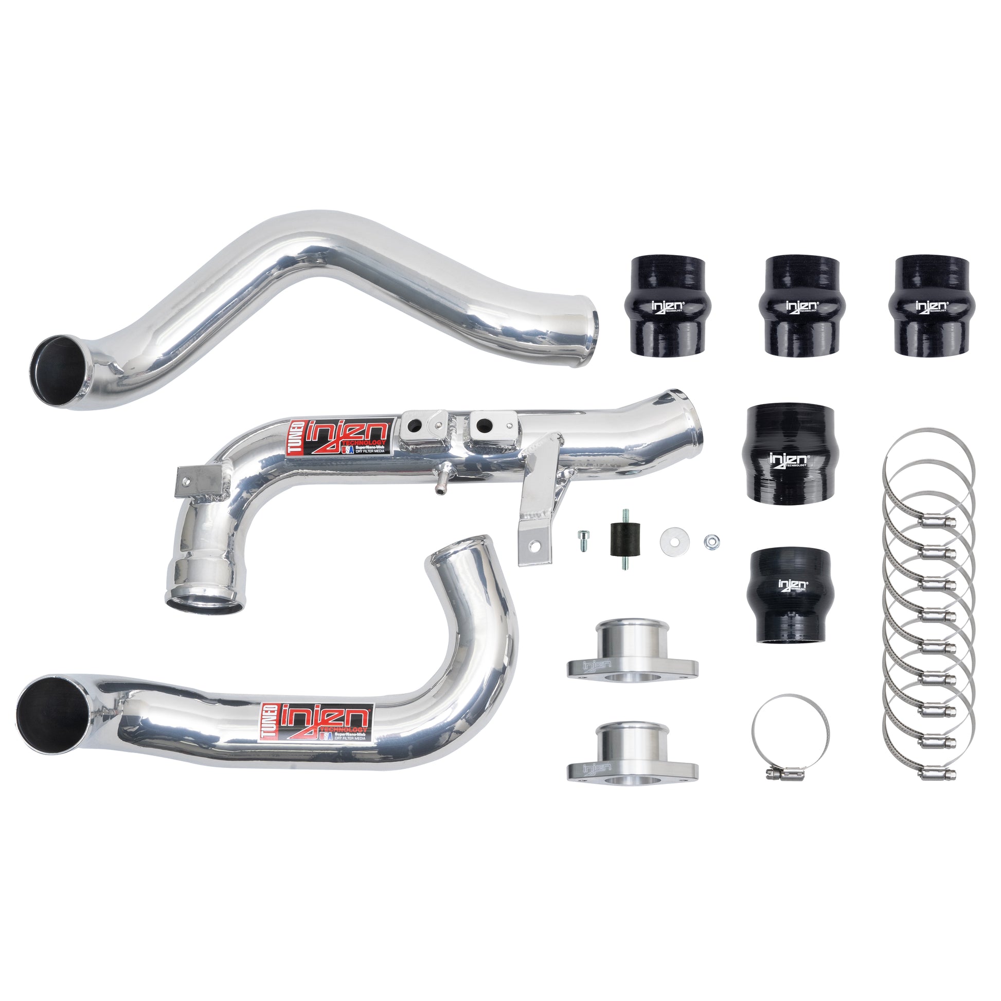 Injen Intercooler pipes are the next logical step in your search for power gains. The Injen staff has put in the time and work to develop parts that perform. These Intercooler pipes are no different, after investigating the OE piping, our engineers identified numerous areas where improvement was necessary. The Injen performance intercooler pipes are constructed of mandrel-bent aluminum piping that eliminates the rust buildup present in the most stock pipes. Injen's Automotive Grade Silicone Couplers and Stainless Steel Band Clamp with Inner Protective Liner are also included in this kit. The Injen technology Silicone Couplers are on a new level. Compared to normal silicone, Injen Automotive Grade Silicone Couplers provide superior resistance to heat, pressure, fuel, and oil. This effectively increases the life of the couplers by preventing leaks and blowouts. The Injen Intercooler Pipe Kit is designed to work with the stock as well as the Injen performance intercooler*. This Intercooler pipe performance kit, like all of our Injen performance parts, includes the Injen Limited Lifetime Warranty.