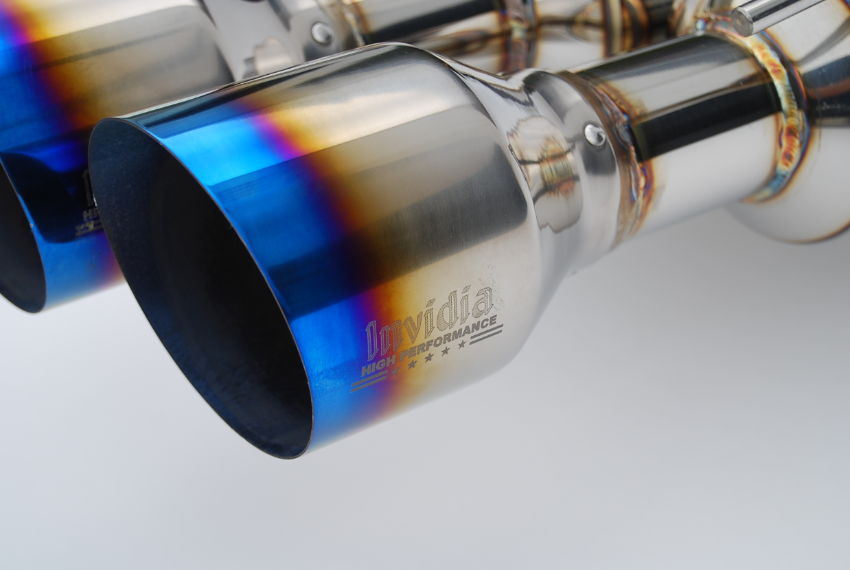 Invidia Exhausts feature available Titanium Burnt Blue Exhaust Tips as well as full Stainless Steel Full exhaust systems. Full Titanium systems are also available which reduce weight and add performance.