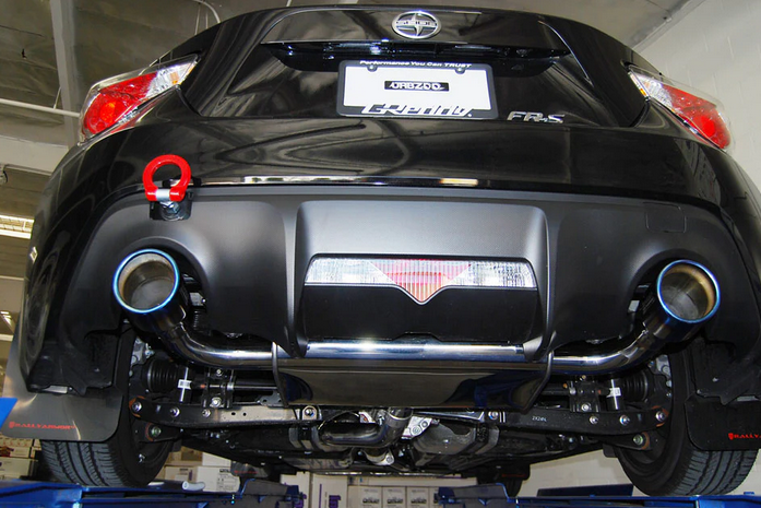 The flat bottom shaped muffler design results in improved high speed aerodynamic performance. The muffler inside contains continuous piping design and use of Advantex material that results in an excellent free-flow exhaust with optimized back pressure, giving greater horsepower, torque gains and a rich deep sporty sound for your 2013-up Scion FR-S / Subaru BRZ. The use of SUS304 polished stainless steel piping, Mandrel bent to shape, state of the art CNC machine made flange, Robot TIG welding and double wall polished stainless steel or Titanium tips, provides outstanding durability and appearance.
