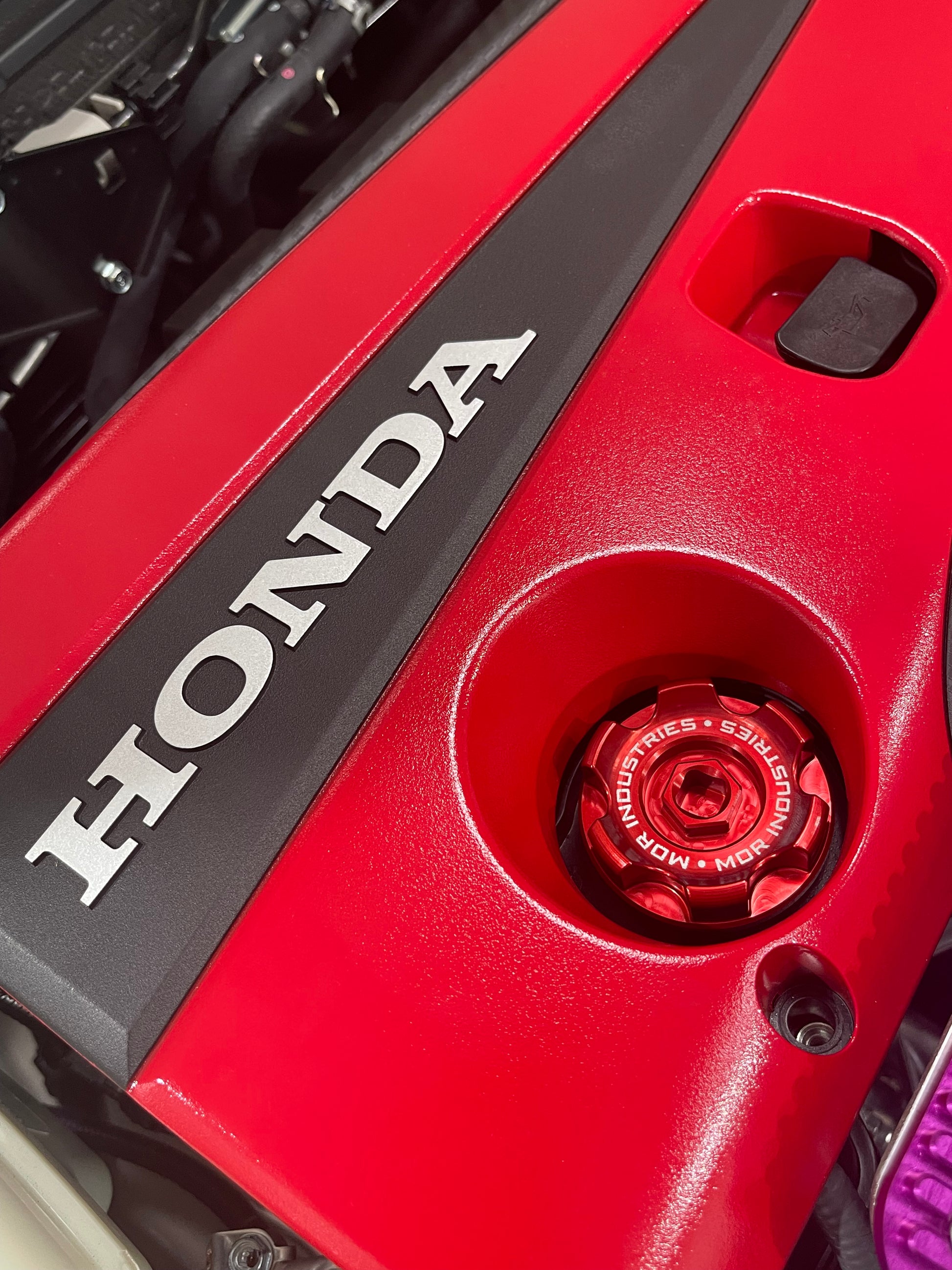 Let's add some color and spice with these brilliant billet oil caps! Though they were designed to fit our CTR FL5, it will fit most Honda applications, with the exception of the K20A/Z or K24A/Z engines.