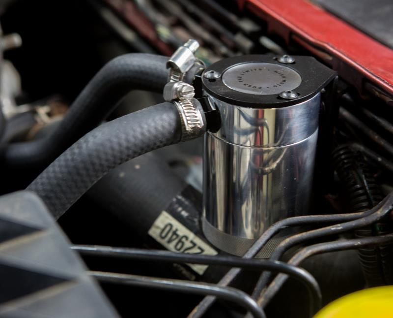 - Mounts in line with the PCV system to separate oil from air using a 50 micron bronze filter