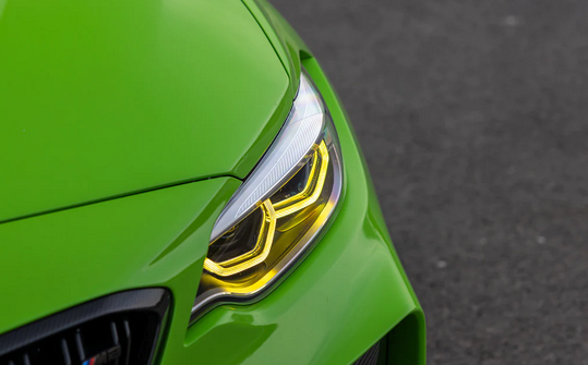 One of the special details of the new BMW M4 CSL are the motorsport yellow daytime running lights. Evoking the look of GT racing cars, the BMW Laserlight headlights with yellow running lights bring a touch of the racetrack to the front of the new BMW M4 CSL. Both in the welcome sequence triggered when unlocking the doors and when the low and high beam headlights are switched on, the angular daytime running lights illuminate in yellow rather than white.