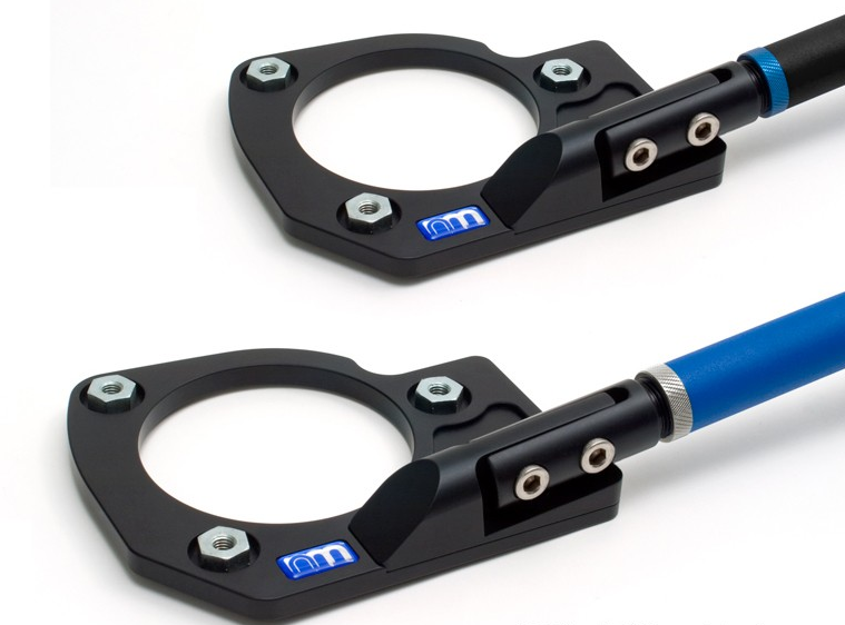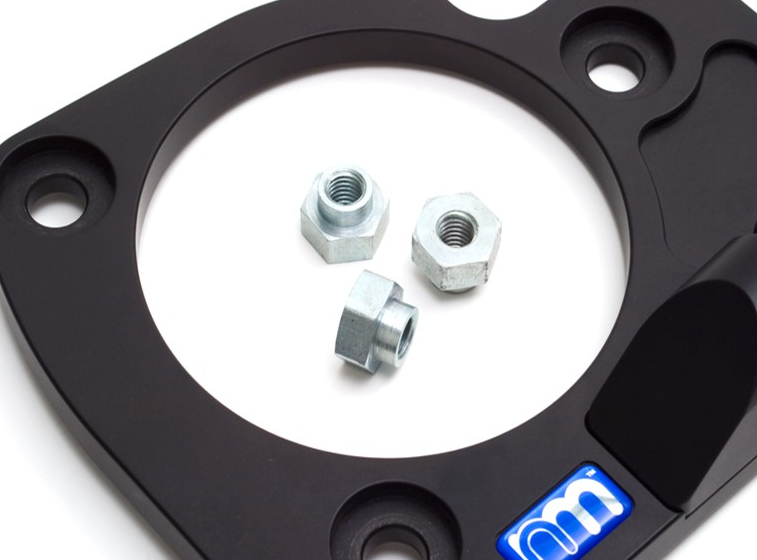 Attention to detail and performance are NM Engineering’s forte and this part does not disappoint. The 6061-T6 aluminum mounting pads will eliminate strut tower “mushrooming” be reinforcing the upper mount and is attached to mounts studs with shouldered long-reach nuts to make sure that the bar and front suspension is secured by more than just a few threads. In addition, when you look at the underside of the pads, you will notice two machined pockets that accommodate the upper strut bearing locator pin on either side while concealing it from view.