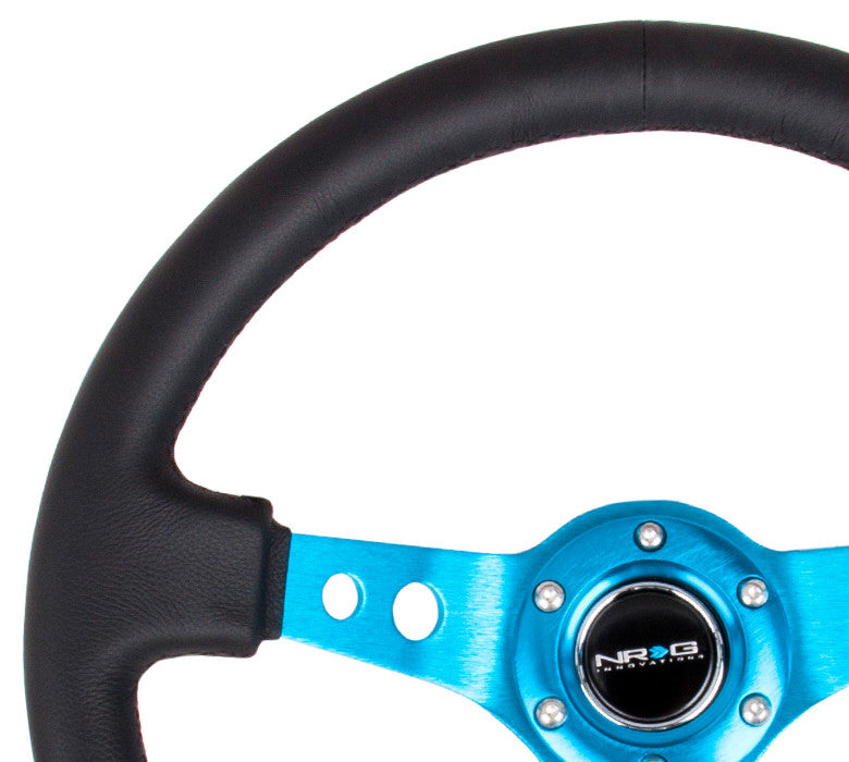 NRG ST-006 Series Steering Wheel (3" Deep) Black Leather, New Blue 3 Spoke (350mm)