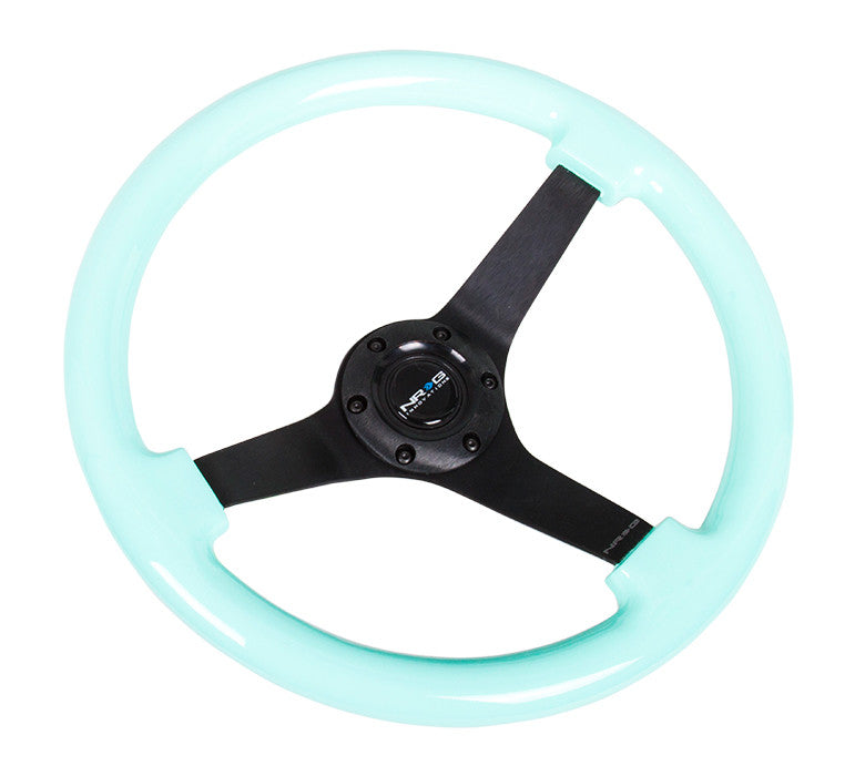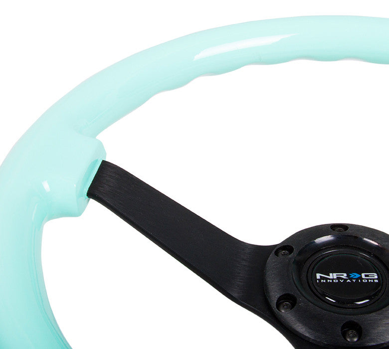 NRG Deep Dish Series Steering Wheel (3" Deep) Mint Fresh Wood Grain, Black Center (350mm)