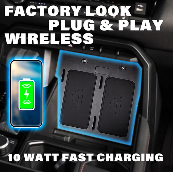 Dual Wireless 10 Watt Qi Phone Charger exclusively Made for the 2022+ Toyota Tundra and 2023+ Toyota Sequoia.