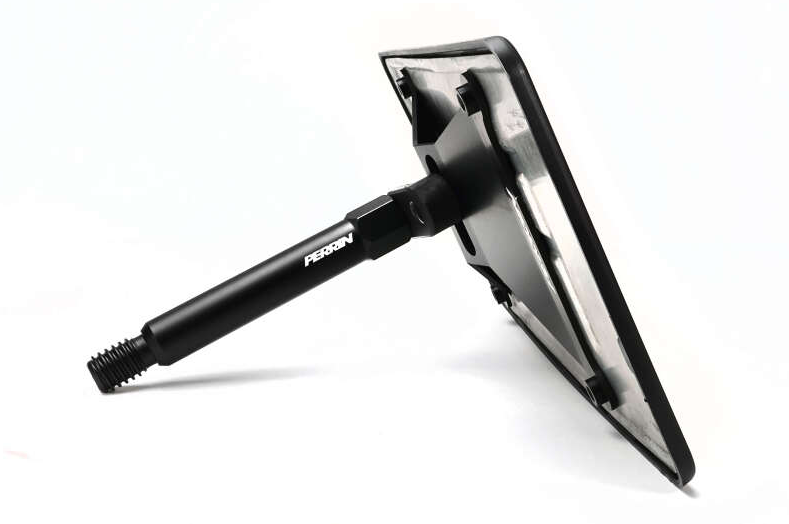 The PERRIN Front License Plate Relocate is adjustable up or down to achieve the desired look, allowing for perfect placement regardless of bumper style or aftermarket accessories.