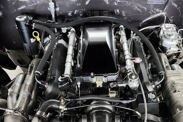 Both VTA CCCs have 2 adjacent inlets making them complimentary to dual bank engines, as shown below. Both inlet ports are machined with 10AN ORB (7/8"-14) threads. NOTE: For engines with 1 crankcase vent port, simple use 14-0351 to plug the additional inlet port.