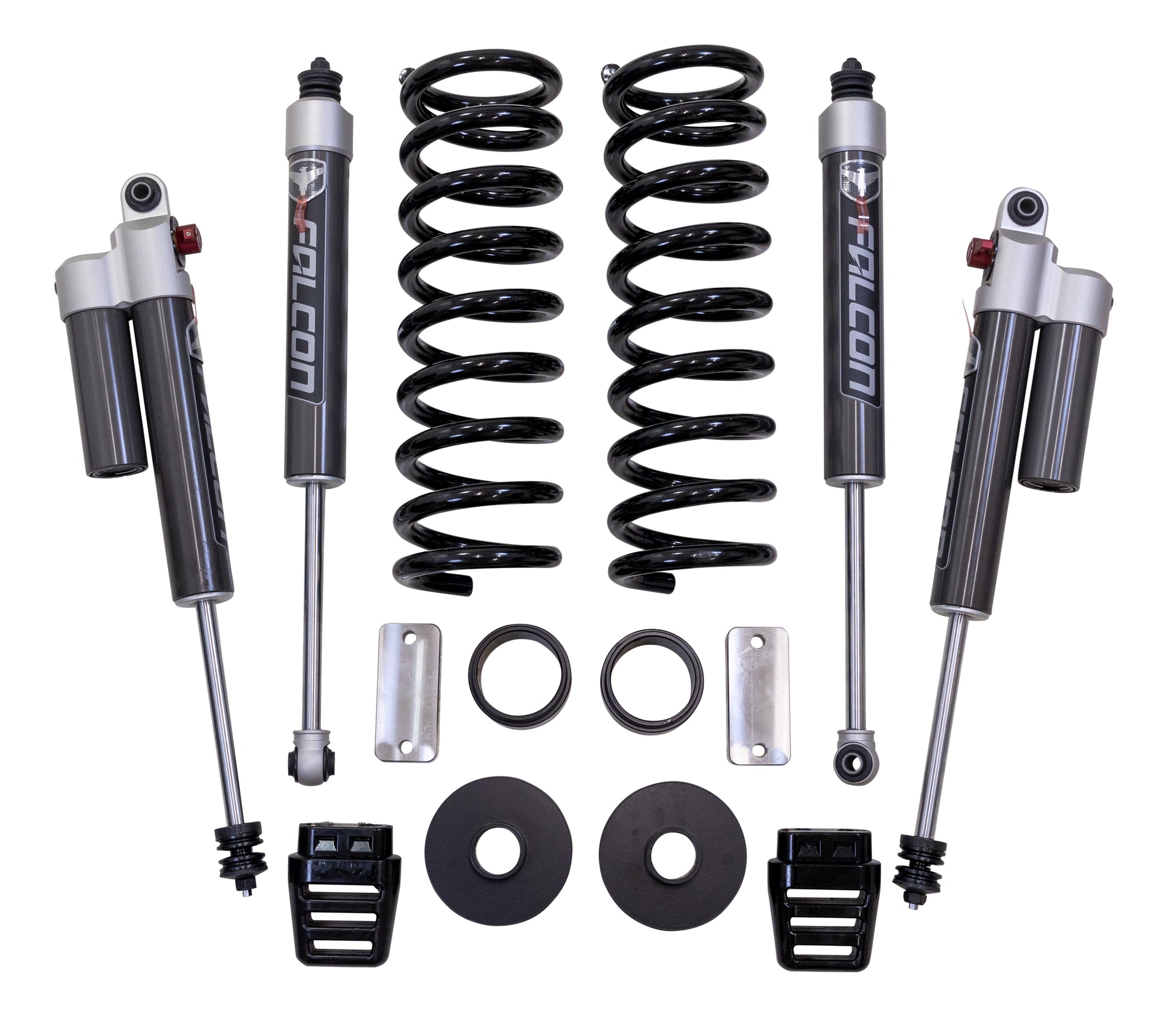 The new SST2.1 system pairs front monotube struts with rear adjustable piggyback shocks. The easy-to-use 3-position Fast-Adjust settings include Sport/daily, Moderate Tow/Haul, and Heavy Tow/Haul. Falcon Performance Shocks improve performance and comfort regardless of the terrain. The versatility of these systems makes them ideal for daily driving, off-road excursions, and tow/haul duties.