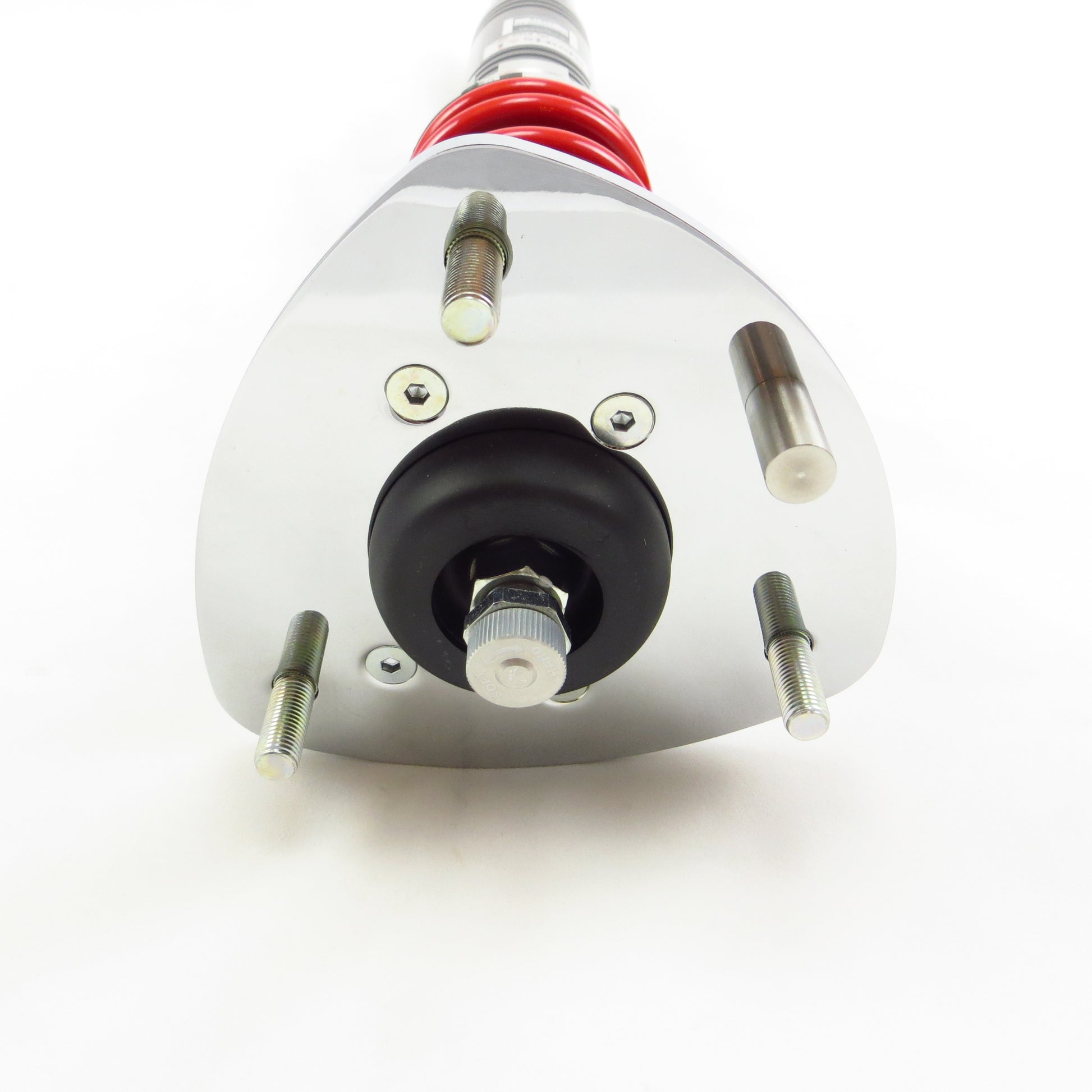 If desired, the upper mounts on select vehicles can add 1.5 degree of camber from the preset setting by unbolting the upper mount and rotating the plate 180 degrees. (for more precise control of camber, adjustable camber plates are available for select models)