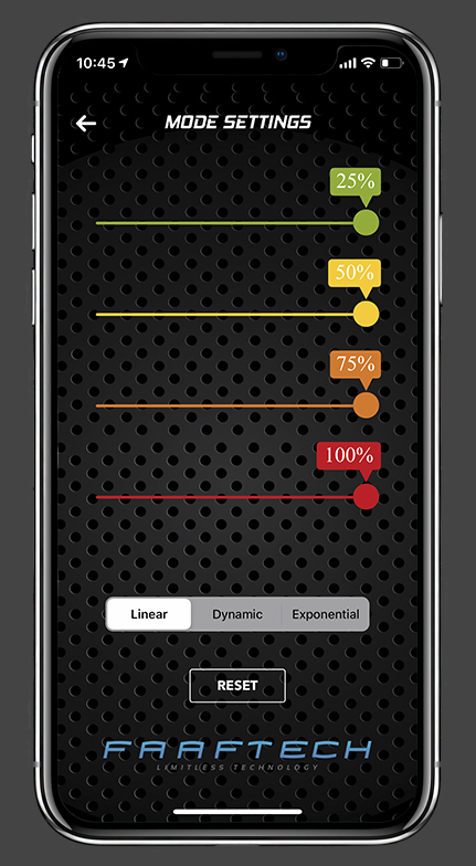 In addition to the options of gain and modes, the response curves can be selected between Linear, Dynamic and Exponential, totaling more than 300 options for your performance.