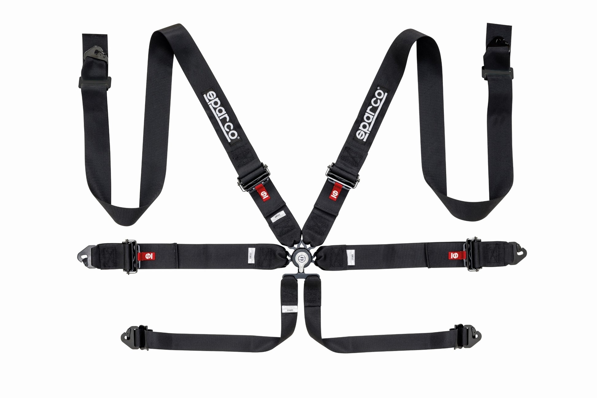 Sparco’s full line of harnesses works in unity with our competition seats. Crafted from high-quality fabric and fitted with durable fasteners, each harness restrains the body for added safety and protection. Our 6-point harness features 3-inch lap and shoulder straps that attach in the center using an aircraft-quality quick-release buckle with integrated anti-submarine belts. The lightweight aluminum adjusters allow for smooth, quick adjustments and perfect clamping. Each belt attaches to the frame using snap-on fixings. Available in three colors each: black, blue and red.
