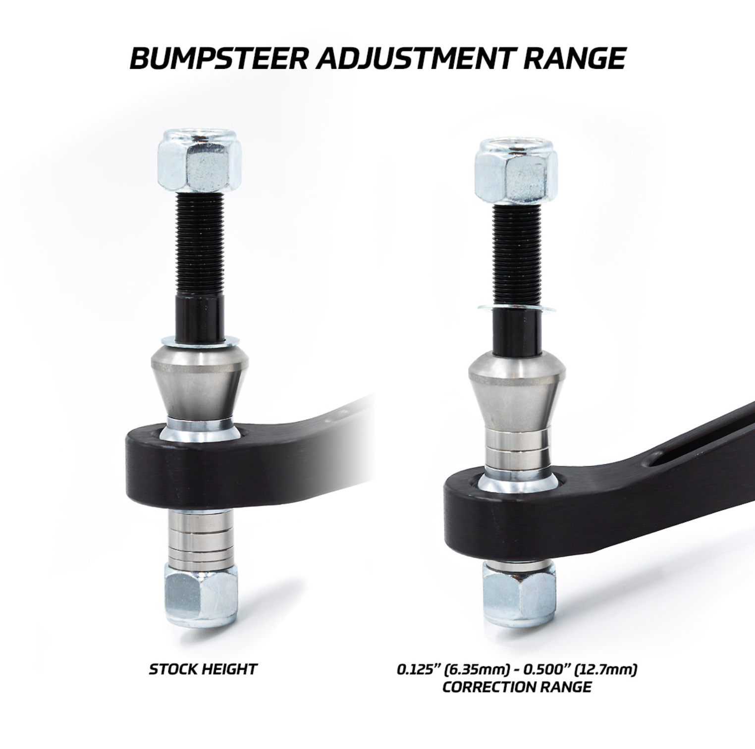 The lower control arms come with a ride height sensor bracket to maintain factory ride height sensor location, regardless of length of the arm to keep those finicky BMW chassis electronics happy.