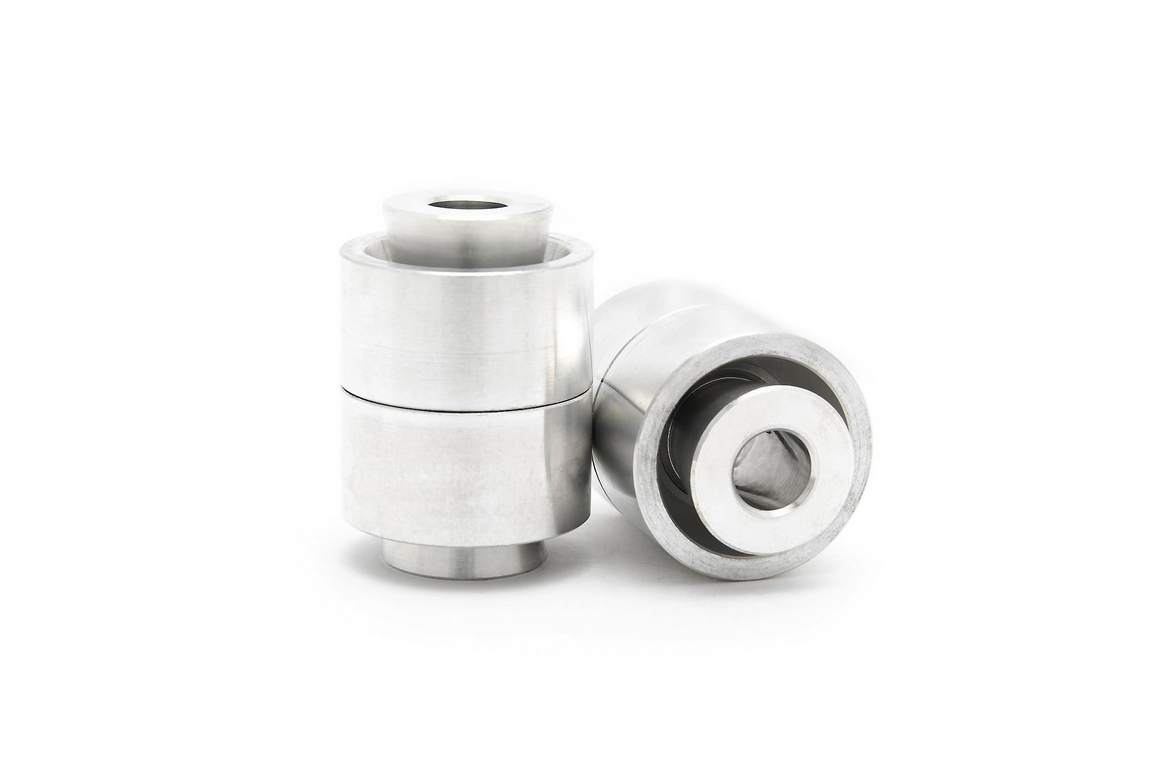 The SPL Hyundai Elantra N front lower spherical bushing kit replaces both of the stock mushy rubber bushings with low-friction spherical bearings, eliminating bushing flex and significantly reducing bind. This maintains optimum suspension geometry under load, greatly improving stability under heavy braking, reducing torque steer during acceleration, and minimizing bumpsteer over bumps.